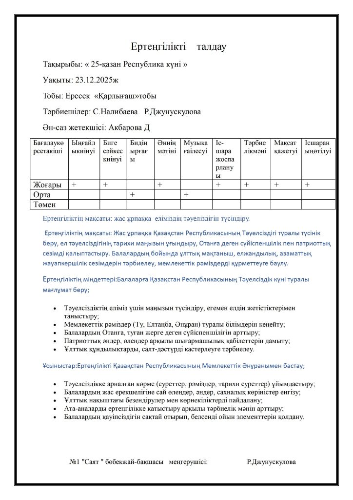 «БІРТҰТАС ТӘРБИЕ» БАҒДАРЛАМАСЫ ІС-ШАРАЛАРЫ