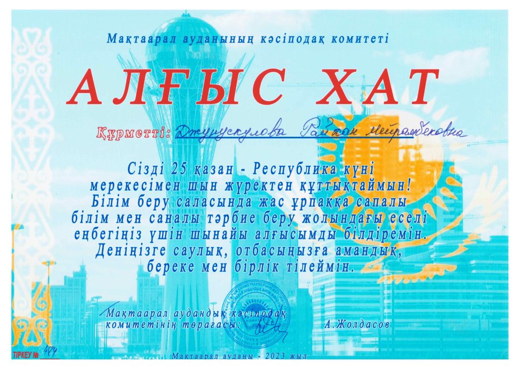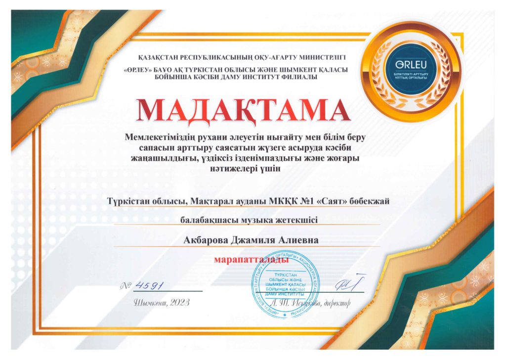 ПЕДАГОГТАРДЫҢ БІЛІКТІЛІК АРТТЫРУЫ