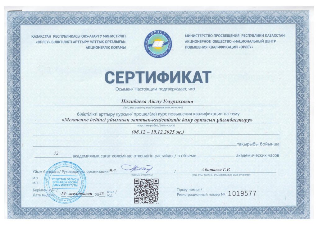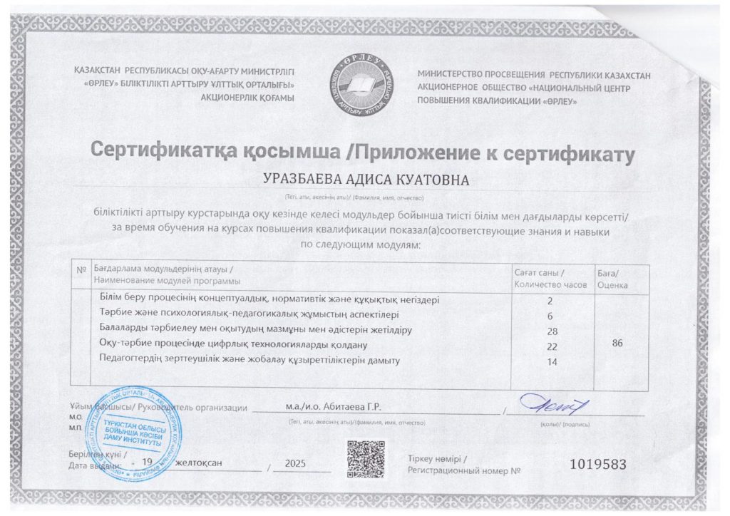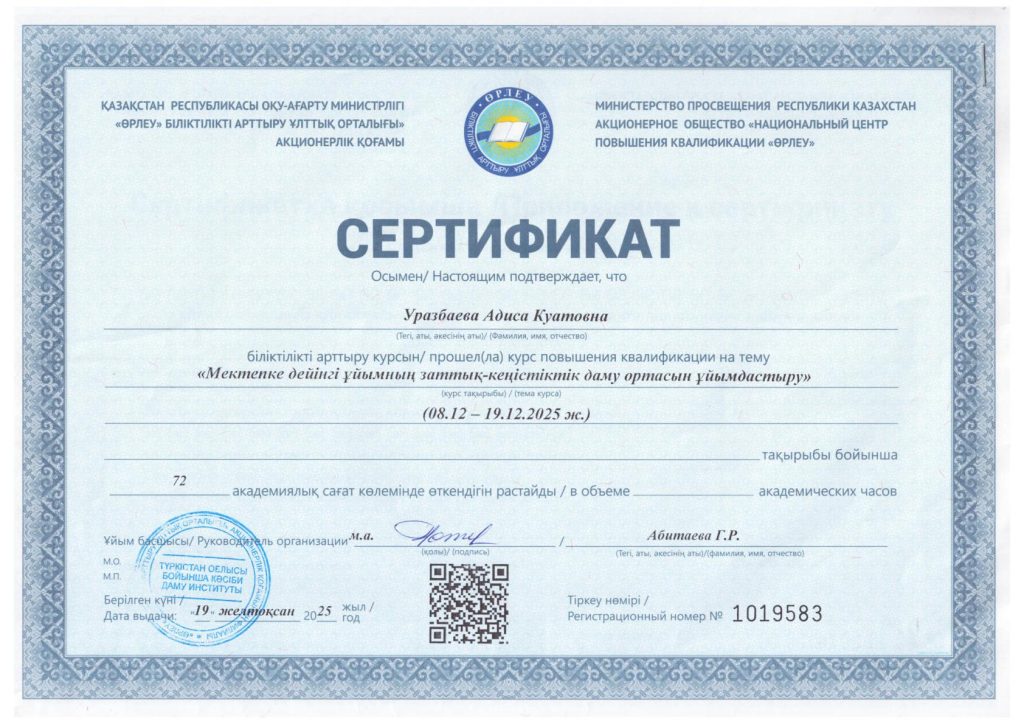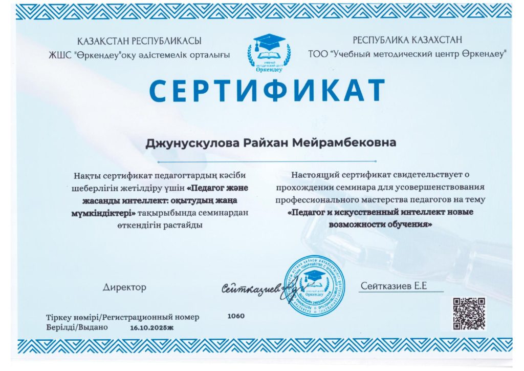 ПЕДАГОГТАРДЫҢ БІЛІКТІЛІК АРТТЫРУЫ