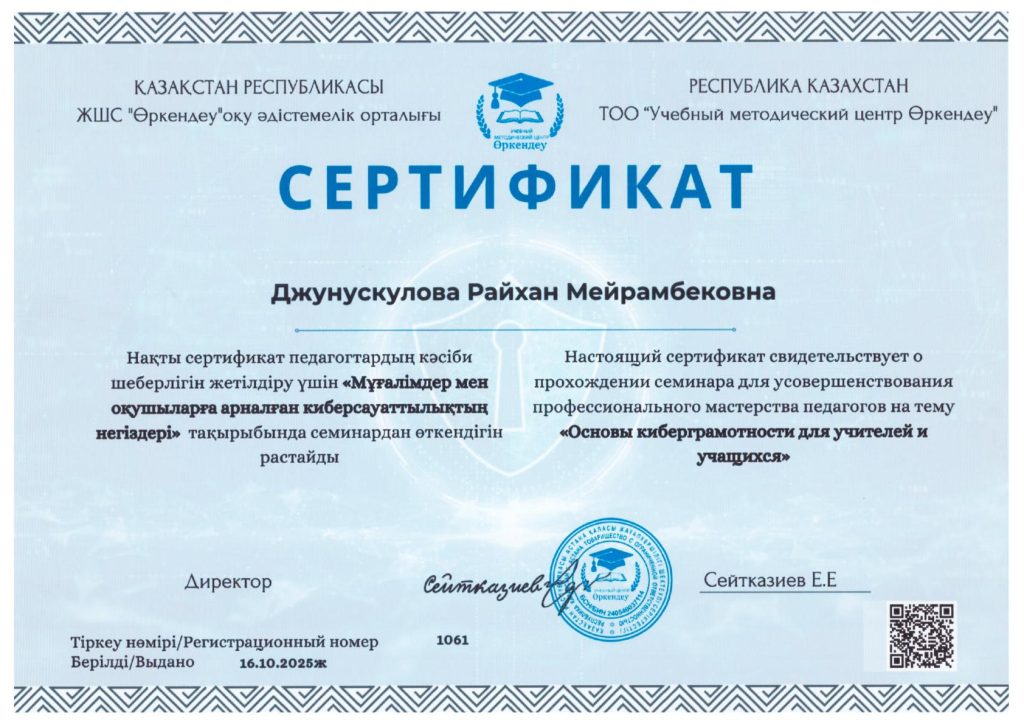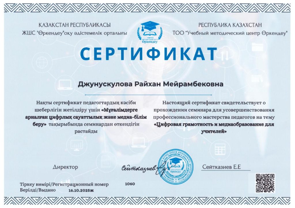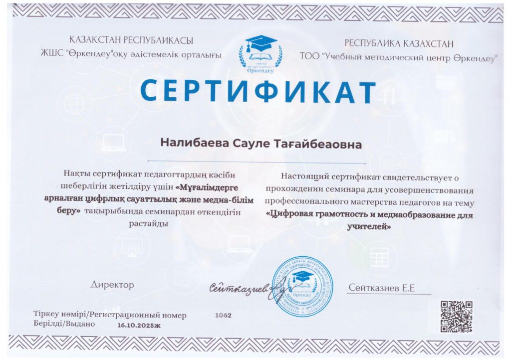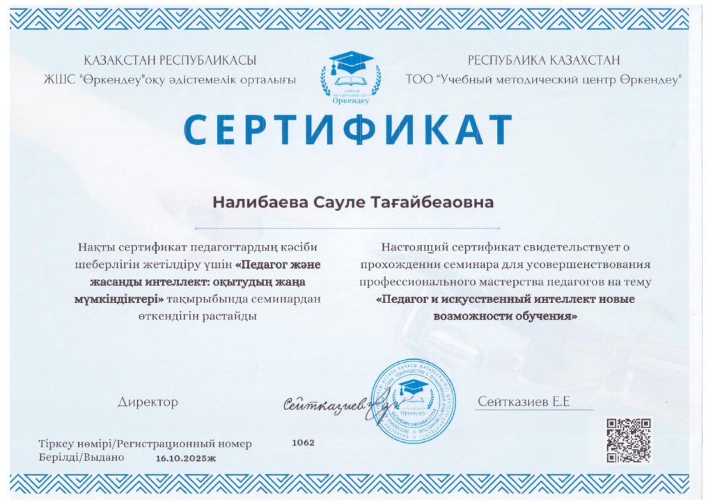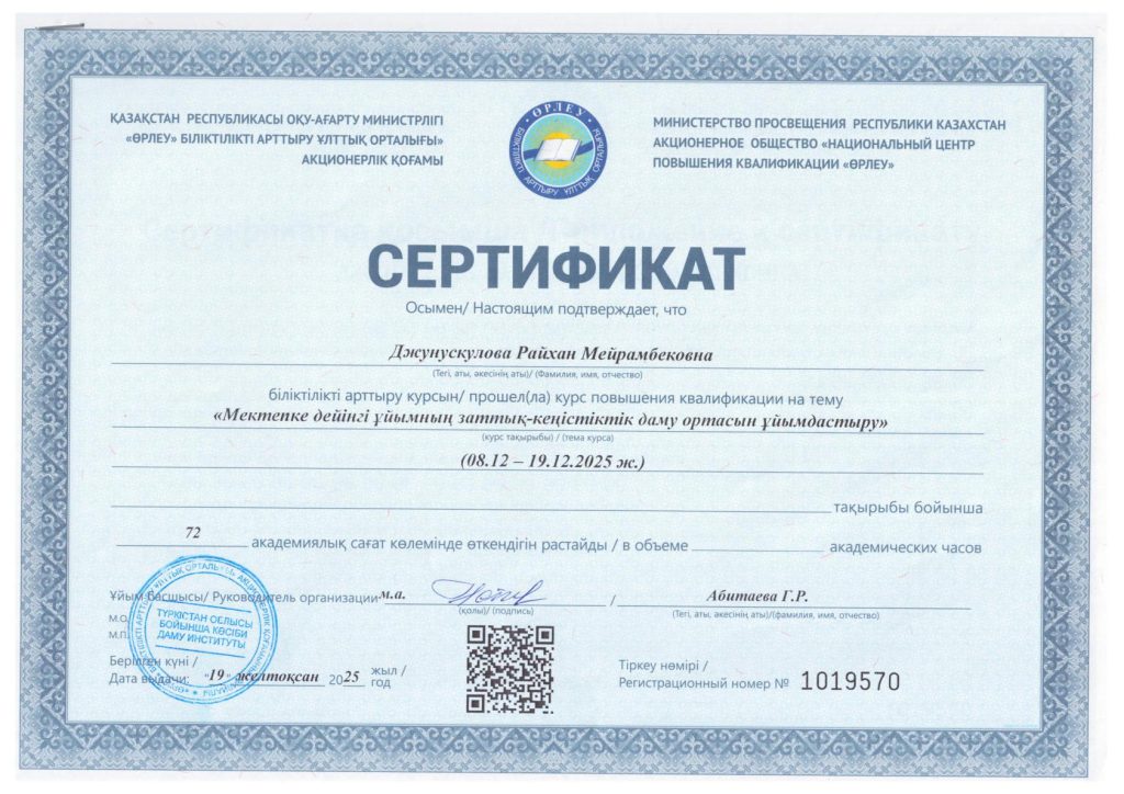 ПЕДАГОГТАРДЫҢ БІЛІКТІЛІК АРТТЫРУЫ