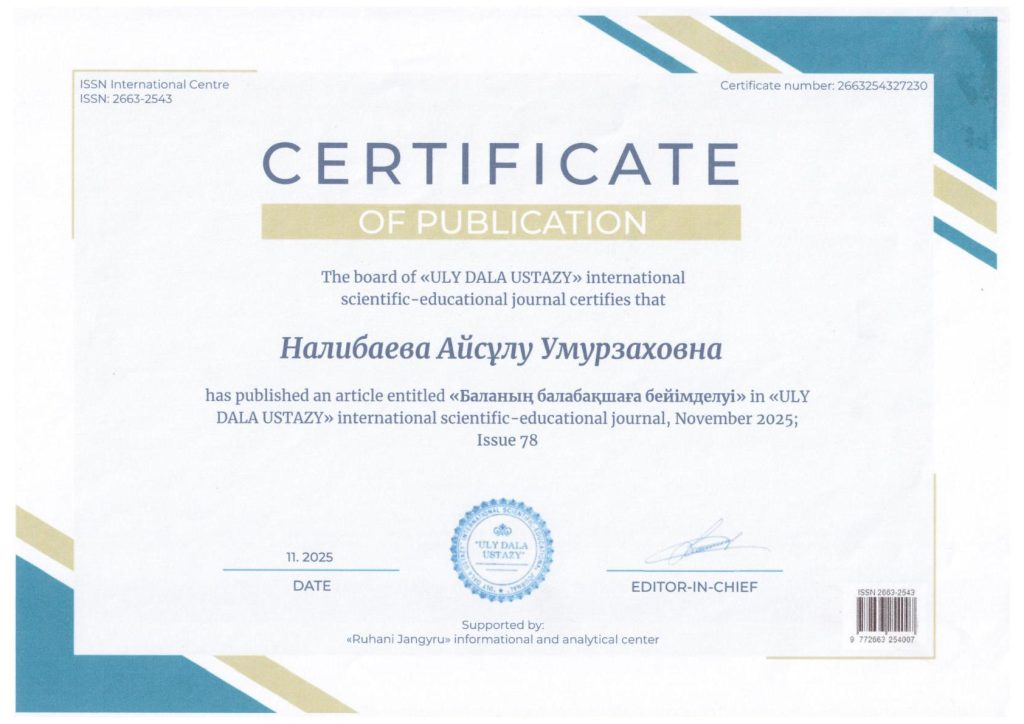 БАЛАНЫҢ БАЛАБАҚШАҒА БЕЙІМДЕЛУІ
