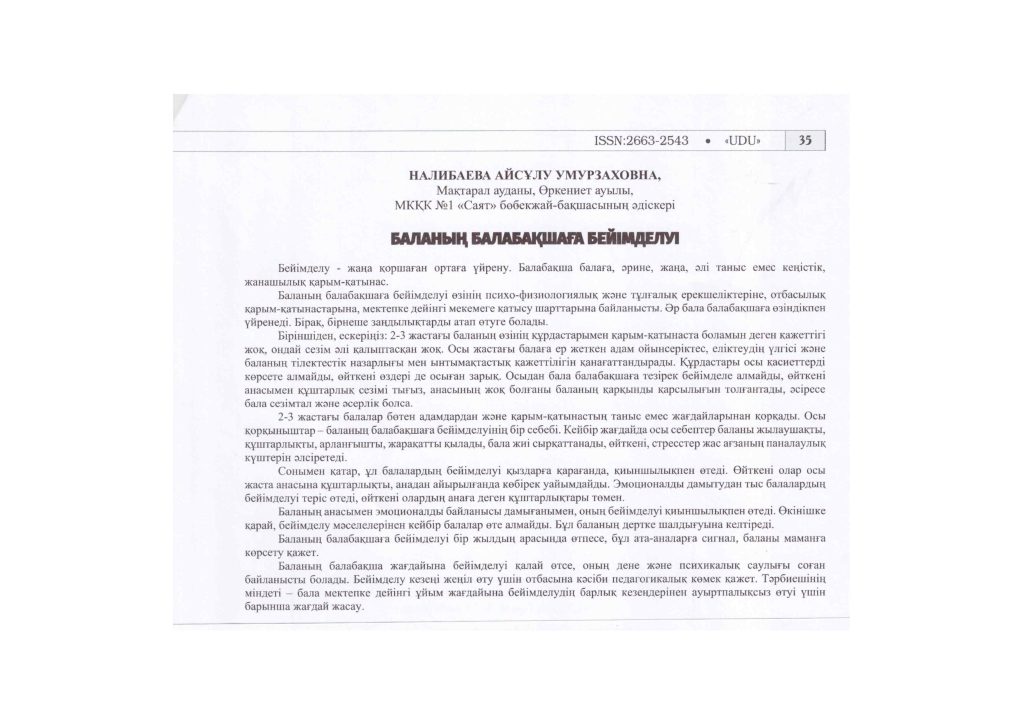 БАЛАНЫҢ БАЛАБАҚШАҒА БЕЙІМДЕЛУІ