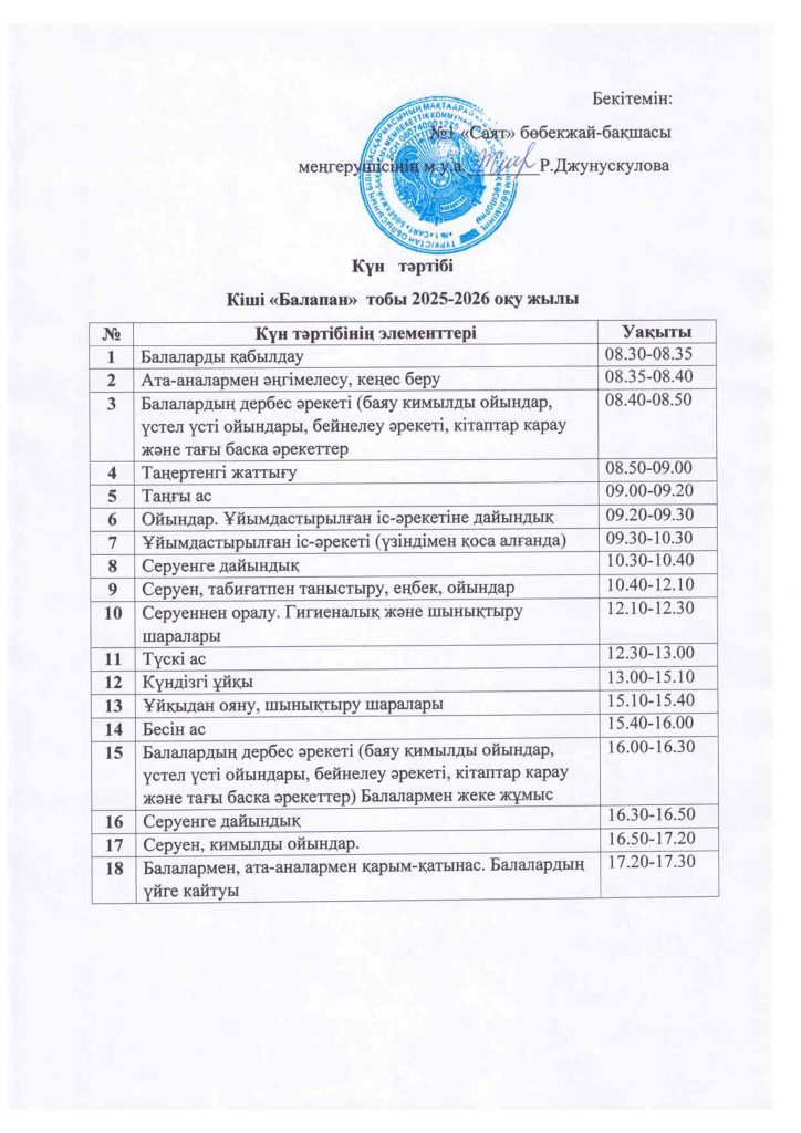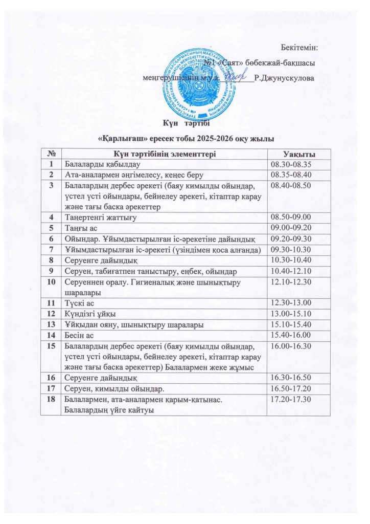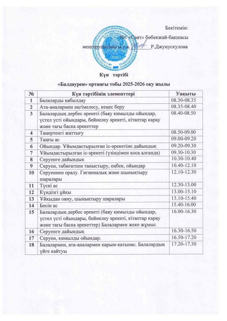 КҮН ТӘРТІБІ, ОҚУ ІС-ӘРЕКЕТ КЕСТЕСІ